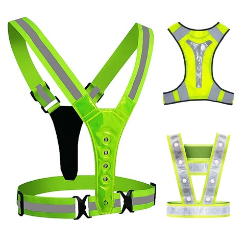 Chaleco reflectante de cinturón de seguridad de alta visibilidad para correr y ciclismo ajustable con luz LED